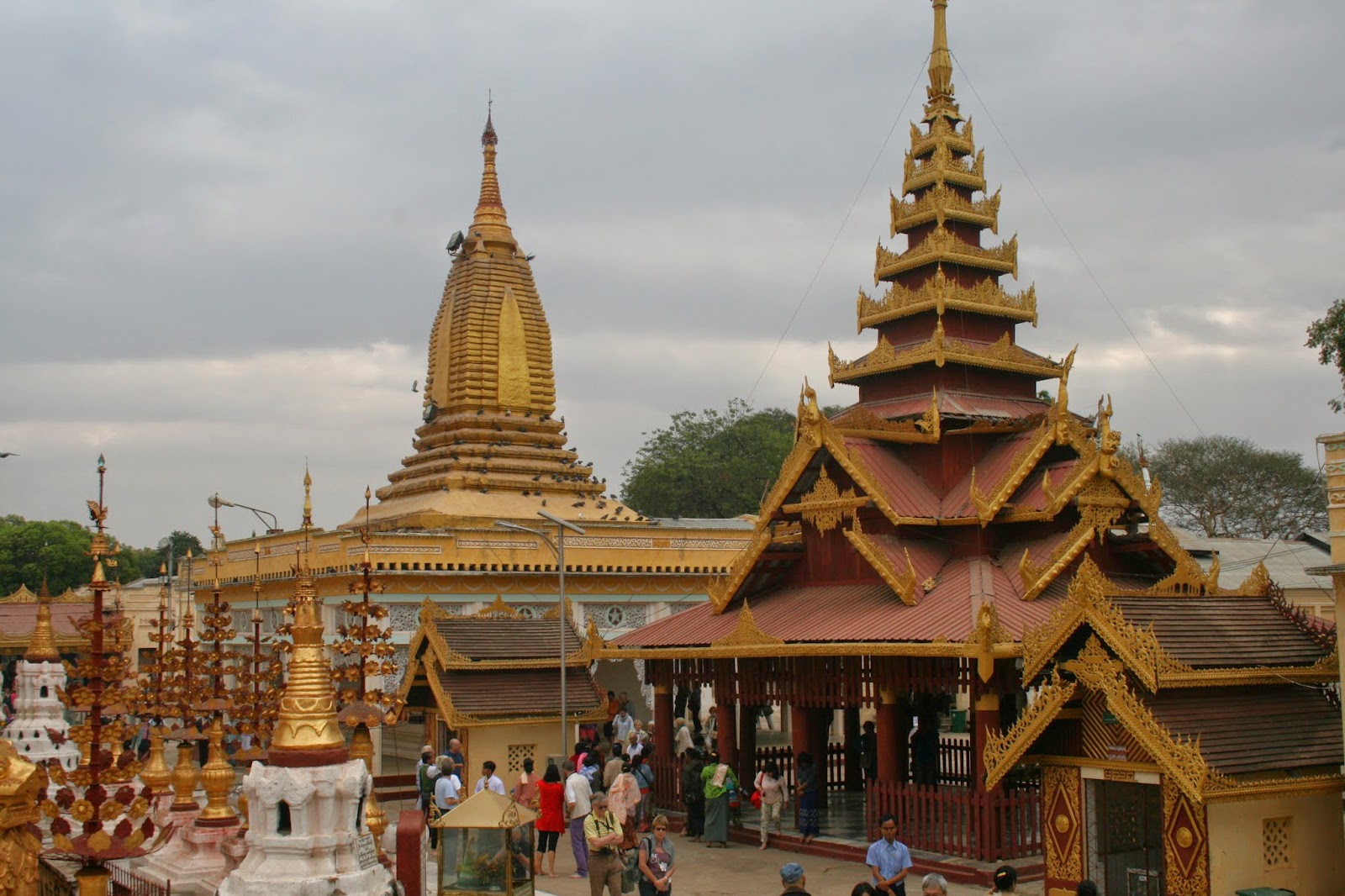 SHWEZIGON. It's located in Nyaung U area of the archaeological zone and famous for "Nat" worship. Left unfinished on the death of King Anawrahta and finished at the end of the 11th century by King Kyanzittha who was the first elected king of Myanmar. An important reliquary shrine, center of prayer for Theravada faith. Built to enshrine one of the 4 replicas of the Buddha tooth in Kandy, Sri Lanks. 2nd tooth replica is at Lawkananda. the 3rd is at Tan Kyi Taung Pagoda and the last at Tu Yuan Taung Pagoda. Legend-if you visit all 4 tooth replicas in one day you will have luck and prosperity. Largest bronze Buddhas in Bagan. Bell shaped zedi sitting on 3 rising terraces. Lots of souvenir stalls.